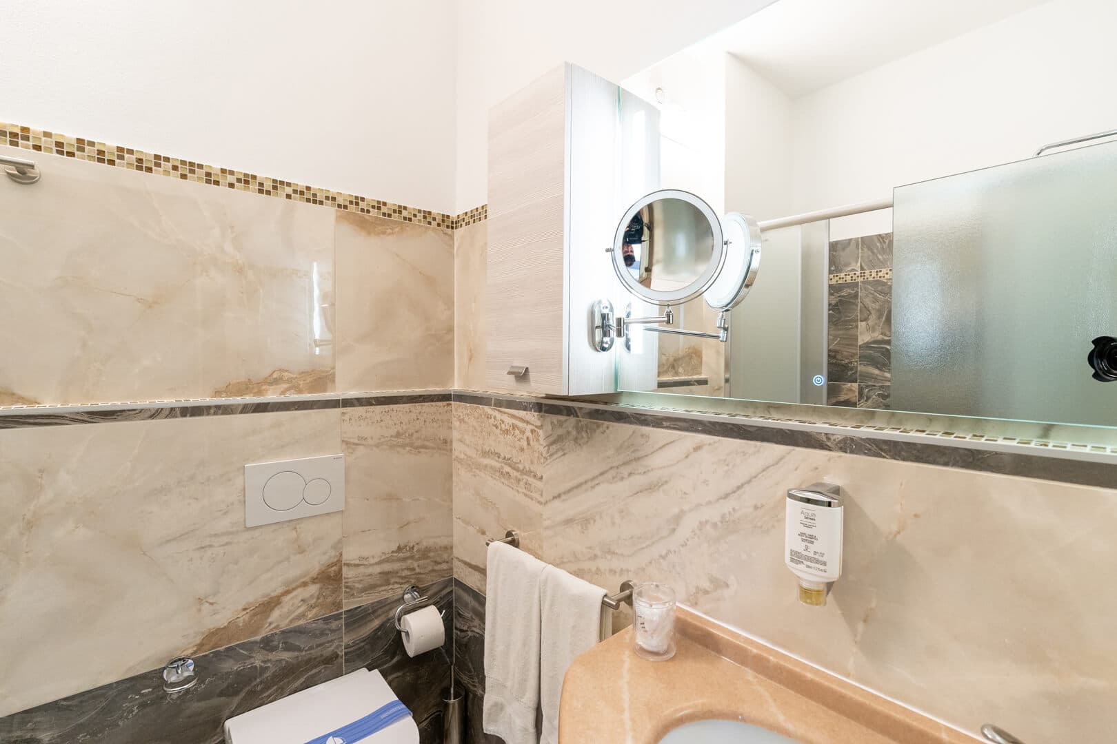 Die Räume sind so gestaltet, dass sie auch im Urlaub mit Kindern Komfort und Bewegungsfreiheit bieten. Alles ist leicht zu handhaben: Koffer, Spielzeug und Kleingeld finden leicht ihren Platz, sodass Eltern sich stressfrei organisieren können. Immer kalte Getränke, eine stabile WLAN-Verbindung und kleine Komfortdetails helfen, das Tempo zu verlangsamen.